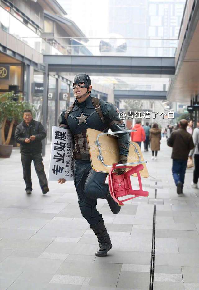 上面那些已經很厲害了,但「青紅造了個白」的功力遠高於此。他還將漫威超級英雄與電視劇《武林外傳》結合,讓超級英雄們穿起了古裝。