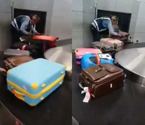 ▼影片中這名地勤守在行李出口處,將行李一件件的排好,為了方便旅客拿行李,他還貼心的將行李握把朝外放置。過程中他不停彎腰,時不時的擦下臉上的汗。