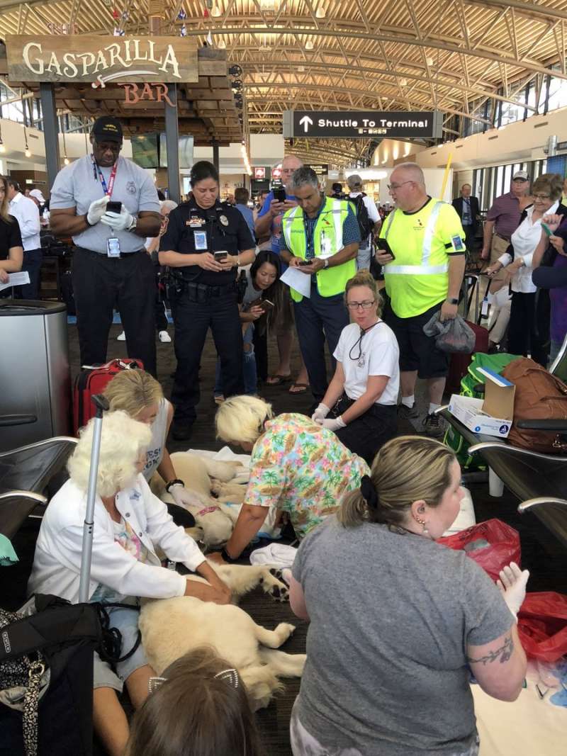 日前有一隻服務犬在美國佛羅里達的Tampa機場準備登機前,突然在機場臨盆,讓機場的緊急救援部門趕緊出動,最後終於讓牠順利在機場誕下8隻可愛的狗寶寶!
