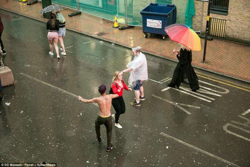▼暴雨天氣沒有影響伯明罕民眾的生活,他們還在參加慶祝活動。