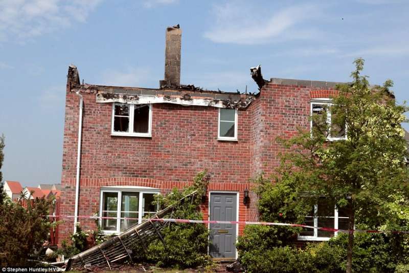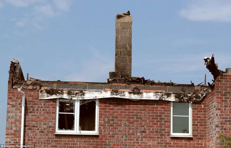 ▼艾塞克斯郡的一棟房子被閃電擊中,屋頂被摧毀。