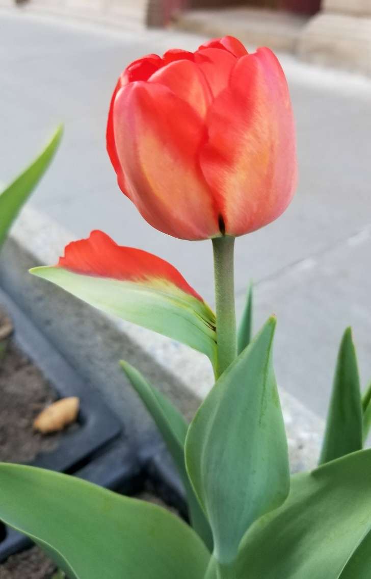 ▼這株鬱金香一半是葉子,另一半是花瓣。