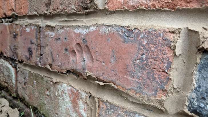 ▼這塊磚有100年的歷史,上面還有當初創作時留下的手指痕跡。