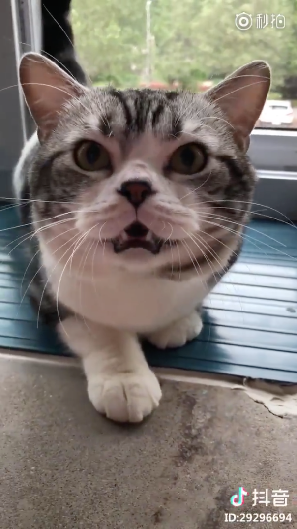 ▼貓咪拉長音「喵嗚」,雖然努力想要霸道一些,卻顯得很軟萌,連正在錄影的主人都被逗笑了。