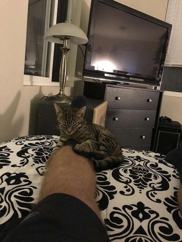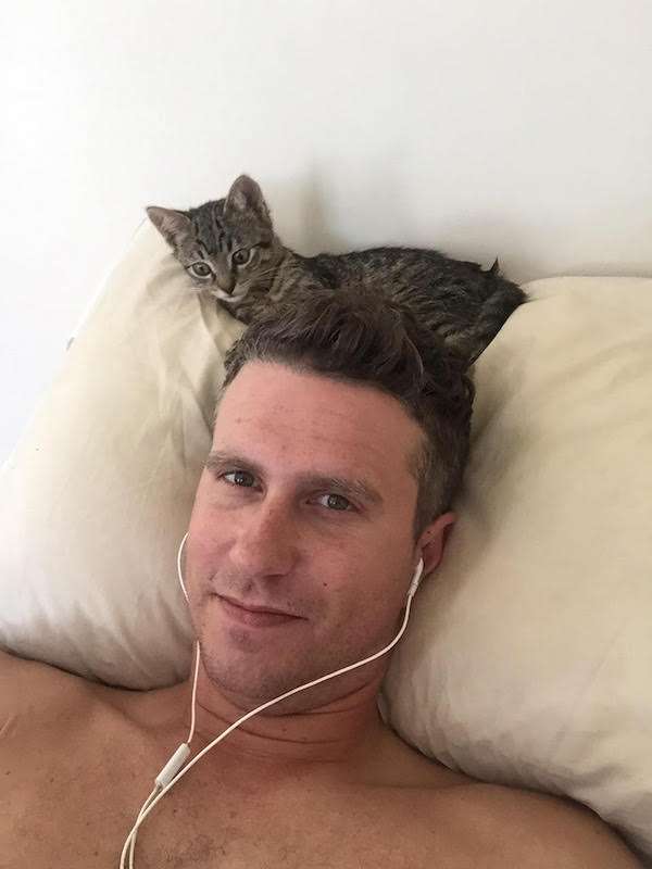 ▼看這個剷屎官這麼好擺佈(誤),小貓很快就賴上他了。小貓總是會亦步亦趨地跟著他,還會大肆搗亂,網友覺得牠像「惡魔貓」。