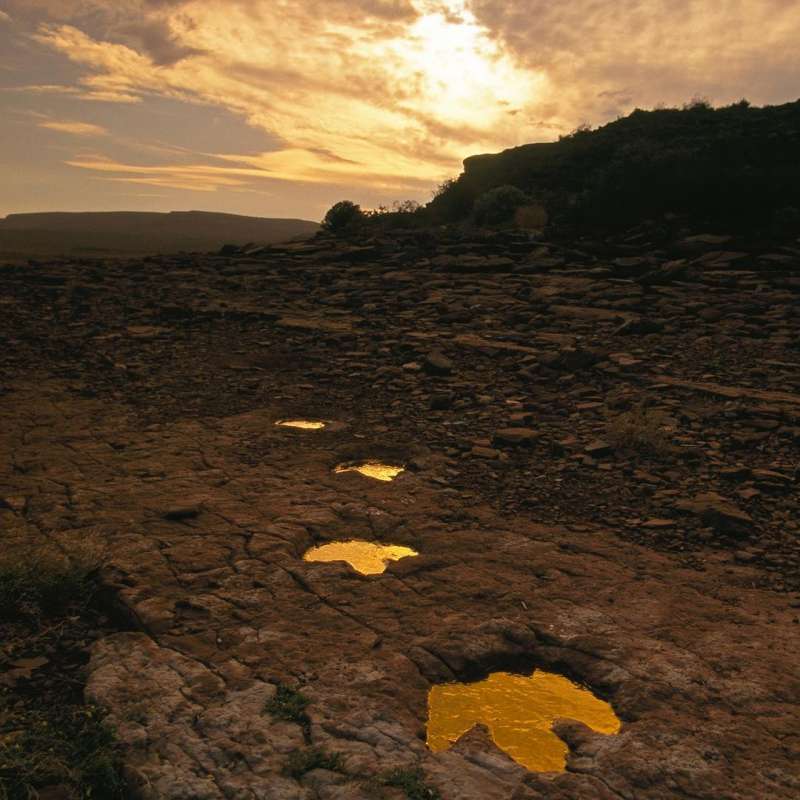 ▼阿根廷保留至今的白堊紀恐龍腳印。