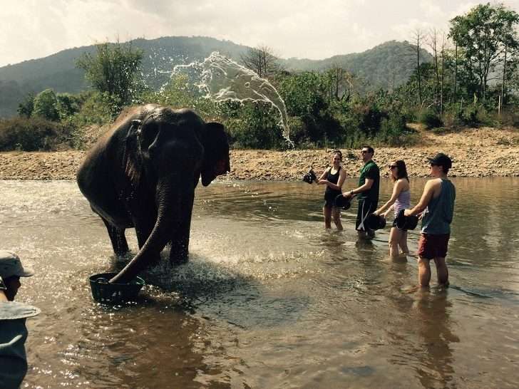 ▼大象噴出的水花也是大象的形狀,這太神奇了!