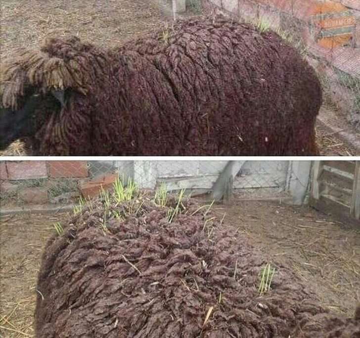 ▼身上長出小草的羊。