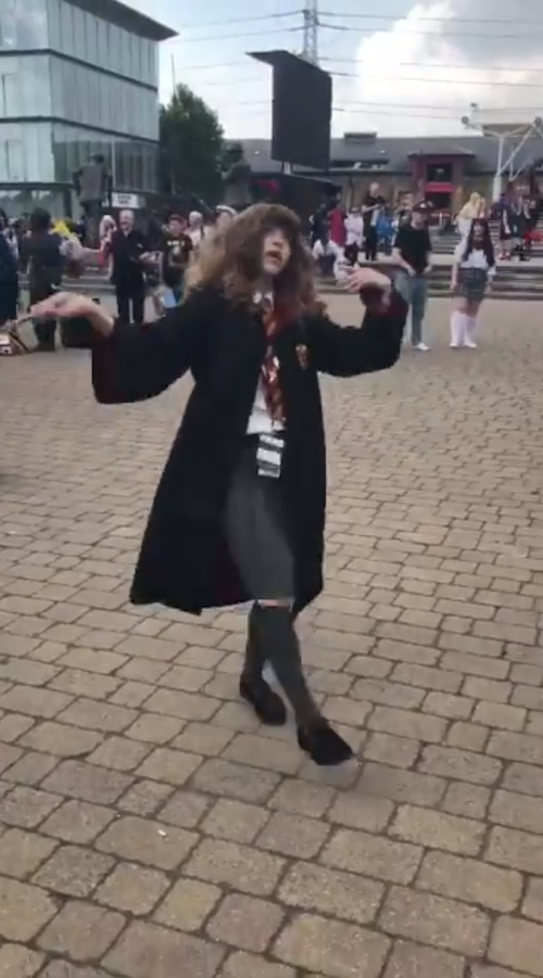 在《哈利波特》裡,大家對於妙麗大多是有著好學生的印象,不過最近這個形象快要崩壞啦!一位國外的Youtuber在漫展上扮成了妙麗,而她的「魔性舞蹈」也在網路上爆紅,造成粉絲們瘋傳呢!