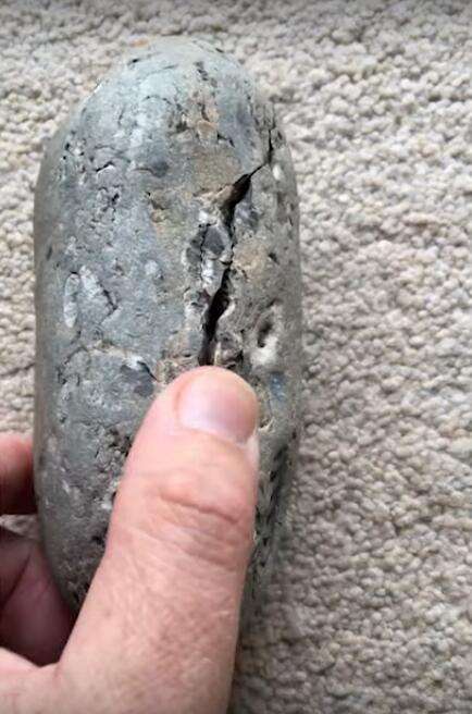 ▼Donne從小就對石頭很感興趣,他原本從事銷售工作,後來因為愛好讀了地質系,家裡也收集了許多石頭。因為家裡的石頭太多,最近Donne的妻子要他將家中的石頭整理一下,他翻出原本的收藏,發現35年前撿到的這塊石頭生出了一條裂縫。