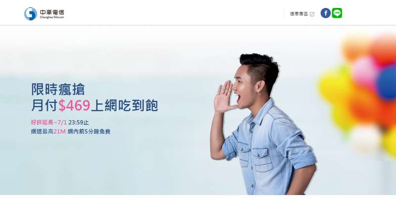 ▼沒想到才過半個月,中華電信再度推出「限時瘋搶月付$469上網吃到飽」方案,只要月繳469元就可享有24個月網路吃到飽!