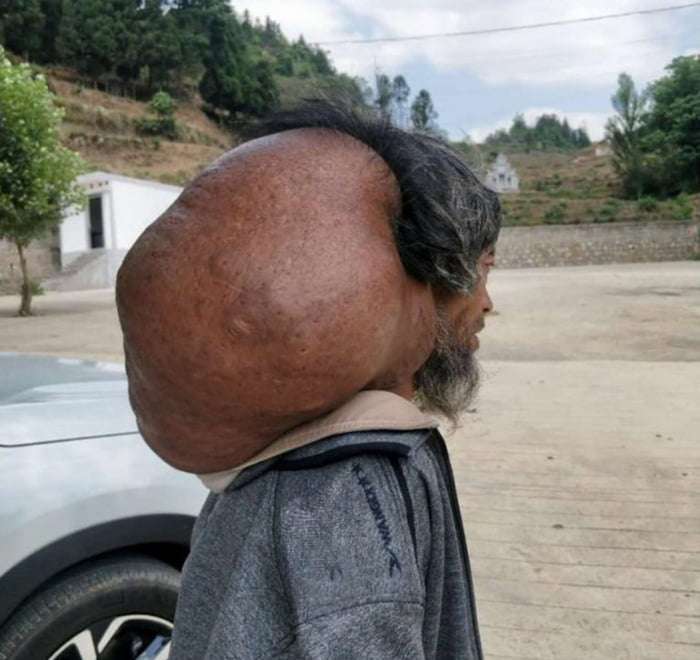 2018年06月04日大陸貴州有一位64歲的趙姓老伯,他17歲時頸上出現一個腫瘤,腫瘤越長越大,足足長到了15公斤。這麼多年來,他一直背著這個沉重的負擔生活。最近,他終於解脫了。