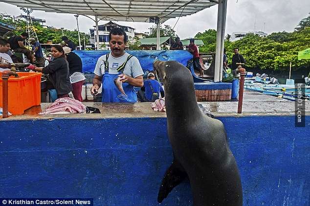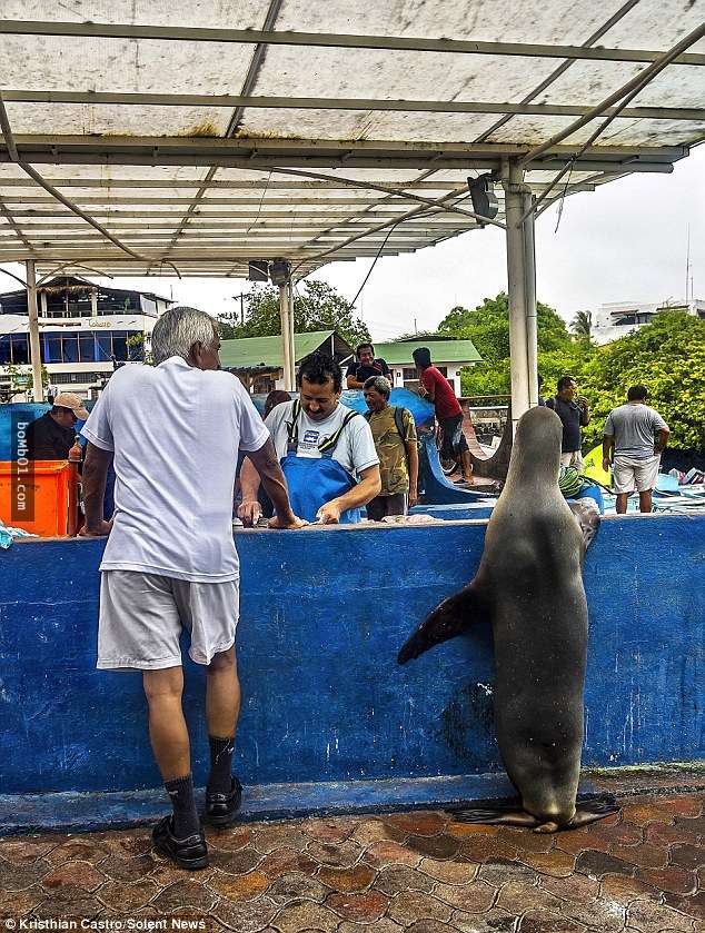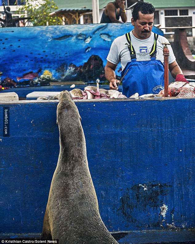 這隻「厚臉皮」的哺乳動物,總是會從海裡上岸,到魚攤上轉一個小時。待慷慨的魚攤老闆給牠幾條魚後,牠就會心滿意足的回到大海裡。