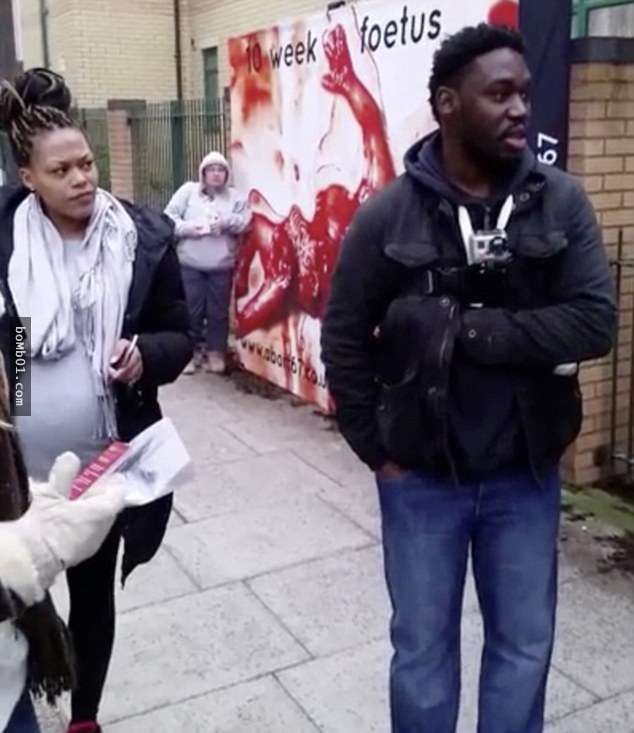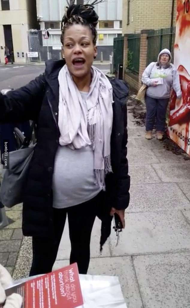 ▼當他們正在爭論相機的用處時,一位孕婦路過並走過來,她告訴抗議者:「你做的事情是錯的。你根本不了解她們為什麼要墮胎,就妄下判斷並在這裡拍攝。」