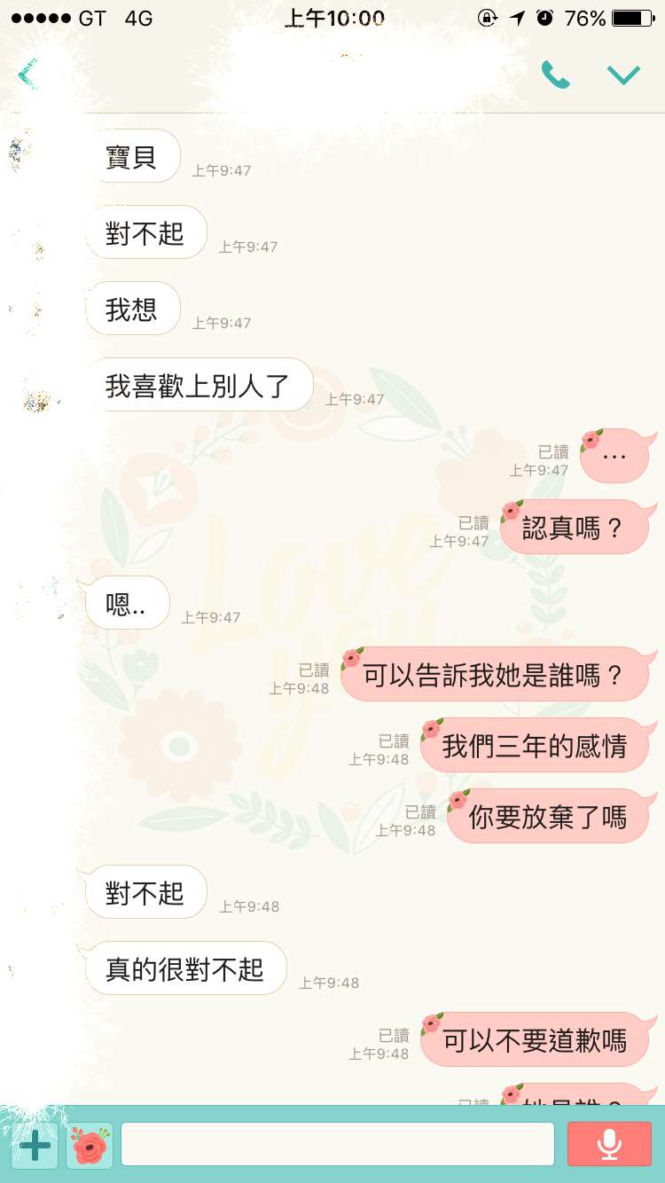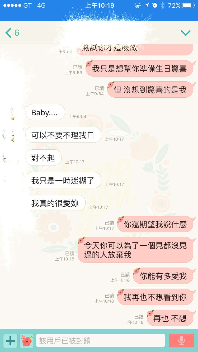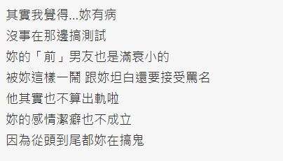 ▼最後雖然男友嘗試挽回,不過女網友卻無法接受,表示自己有「感情潔癖」,兩人落得分手下場。