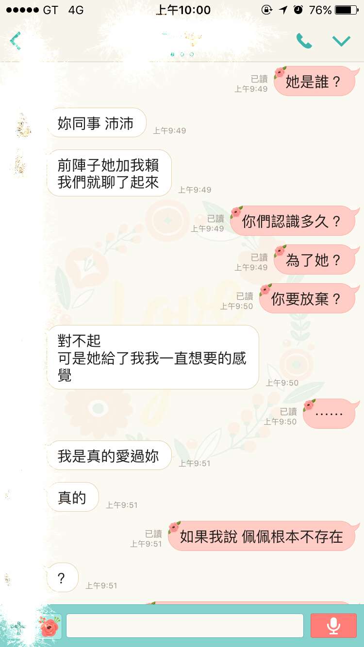 ▼在她的再三逼問對方是誰之後,男友終於坦誠他喜歡上了「沛沛」!