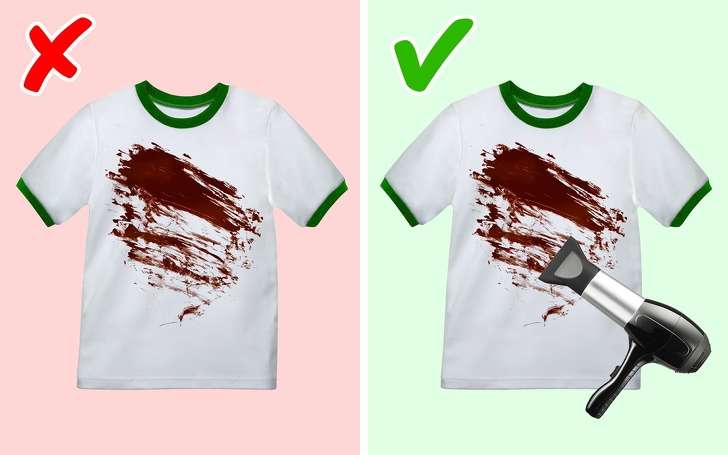 ▼12.用吹風機清除頑固污漬:草漬、土漬、果汁漬很難清洗,先用吹風機吹熱,再在污漬上塗一點清潔劑,然後用洗衣機清洗,就能輕鬆洗乾淨。