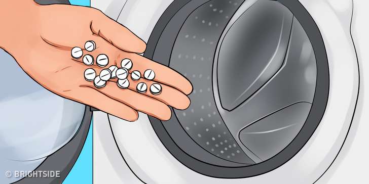 ▼3.在洗衣機裡放阿斯匹靈:白色衣服上的汗漬很難洗乾淨,洗衣服時丟幾片阿斯匹靈,能漂白去污。