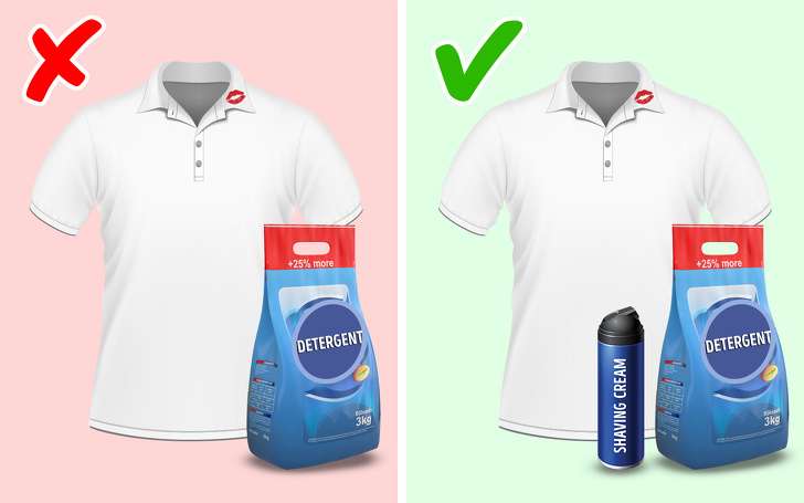 ▼9.用刮鬍膏去除化妝品痕跡:粉底、口紅沾染到衣物上時很難清除,先在上面塗一些剃鬚膏,再清洗就能變乾淨。