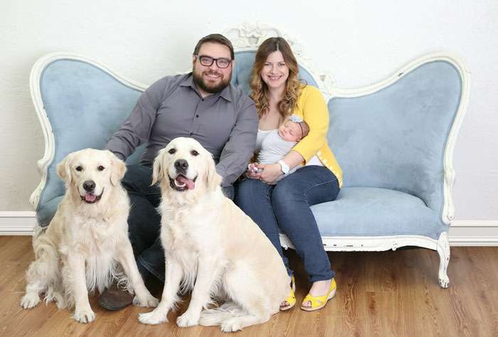 ▼布魯和科比(Bleu and Colby)是克里斯一家飼養的黃金獵犬,過去牠們就是克里斯和妮娜的定時鬧鐘,早上6點一到,這兩隻狗就會來叫醒他們,表示「我餓了」!