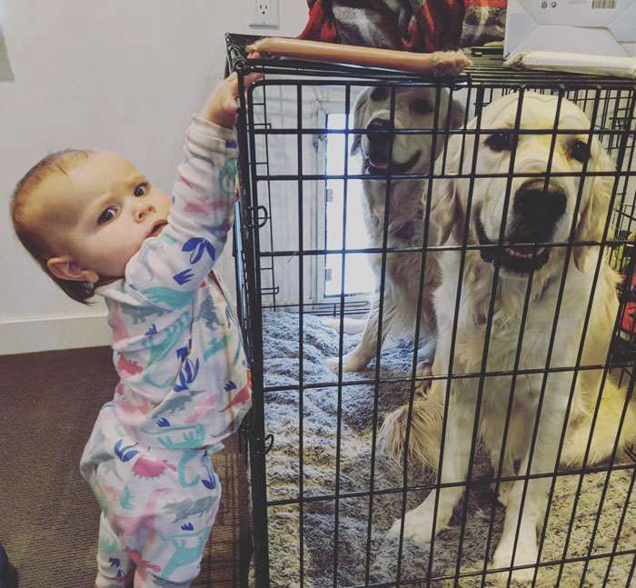 爸媽超傻眼! 2隻黃金協助小寶寶「越獄」 興奮狂搖尾巴:快拿零食給我們吃~