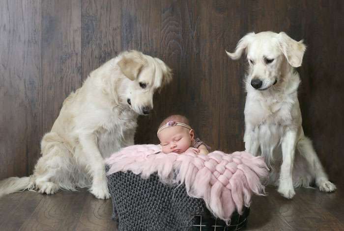 ▼不過在小女兒克蘿伊(Chloe)出生後,事情漸漸變了。這兩隻黃金獵犬開始守在克蘿伊身旁,而且發現這個小女娃似乎更好玩,也更加慷慨!