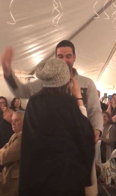 ▼帳篷裡坐滿了她的親朋好友,父母也來到了現場。原來男友Danny在她不知情的情況下請來她的親人朋友,準備進行一場浪漫的求婚。