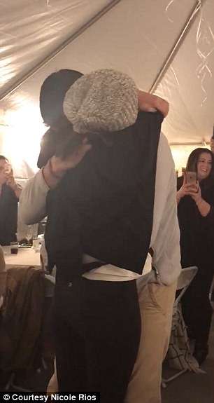 ▼在親朋好友的歡呼聲中,兩人緊緊地擁抱在一起。