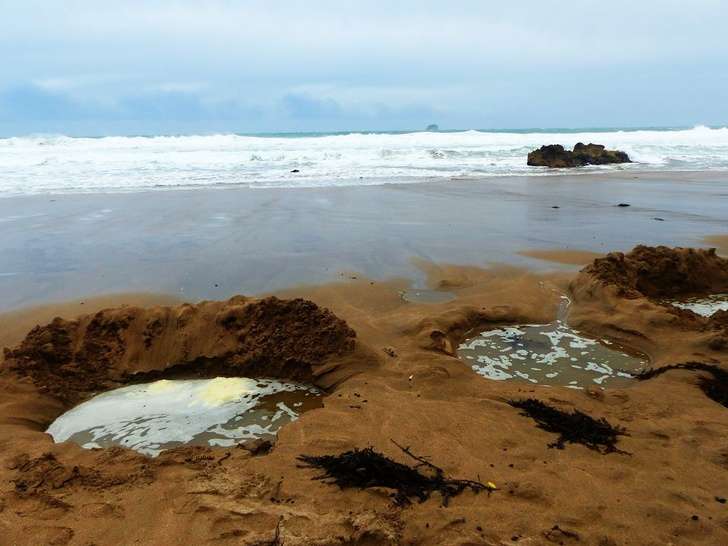 ▼紐西蘭的熱水海灘。來到這裡你會發現很多人在沙灘上挖洞,因為這裡的海水是溫的,泡在裡面超級舒服。