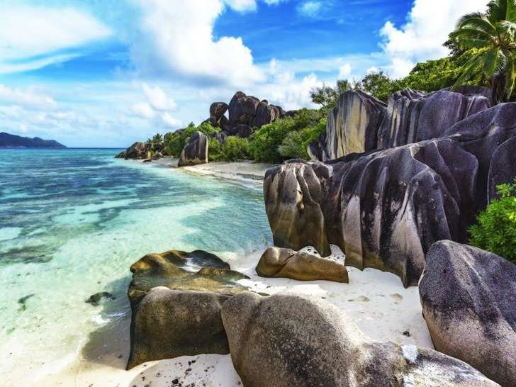 ▼塞舌爾安西源飯店。風景如畫的白色沙灘,背後是天然雕琢的花崗岩巨石,周圍是碧綠的海水,一切都美得讓人窒息。最讓人興奮的是這裡的海灘面向西方,可以愜意的欣賞日落。