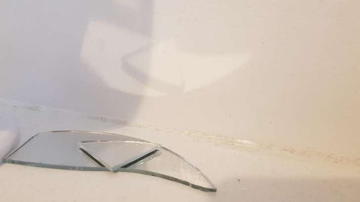 ▼1/2盎司(相當於15ml)碎片以每小時15,000英里(12,140km/h)的速度衝向鋁塊所造成的破壞。