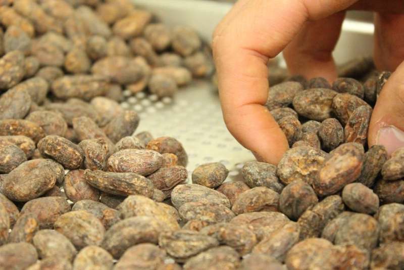▼製造商在收到曬乾的可可豆後首先要進行手工挑選,將其中破碎的豆子、雜質去除。