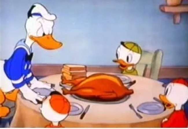 ▼唐老鴨殘殺同類:在某一集中,唐老鴨和孩子們慶祝感恩節,把烤火雞端上了桌。根據傳統,不管是人類還是知名動畫角色都應該吃火雞。