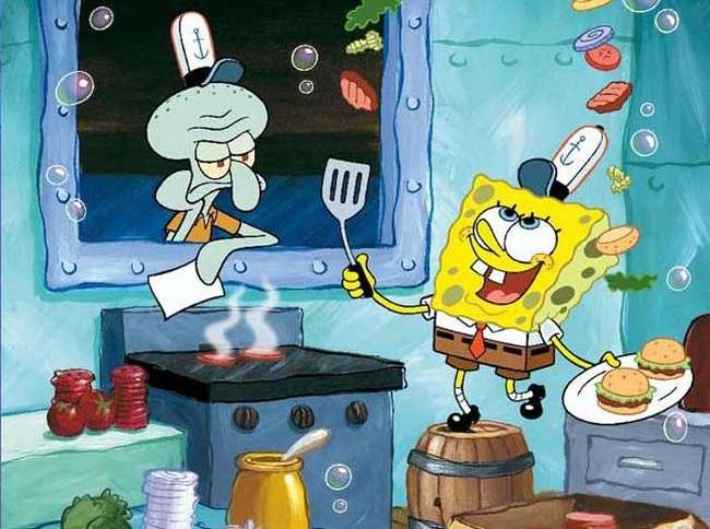 ▼「美味蟹堡」的秘密食譜:材料為芝麻脆皮麵包、醬菜、生菜、黃瓜、番茄加少許醬料、加入生雞蛋的碎肉(最好是牛肉和豬肉)、起司、番茄醬、芥末、鹽、黑胡椒。首先將麵包切成兩半,放入炸肉餅,加入芥末、番茄醬、醃菜、生菜葉、黃瓜(記得親吻它們)、起司、番茄和一滴愛。用麵包蓋住所有的東西,美味的蟹堡就做好了。