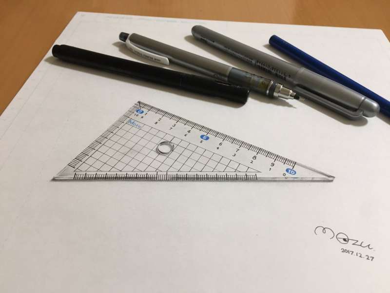 ▼他19歲時畫的三角板。