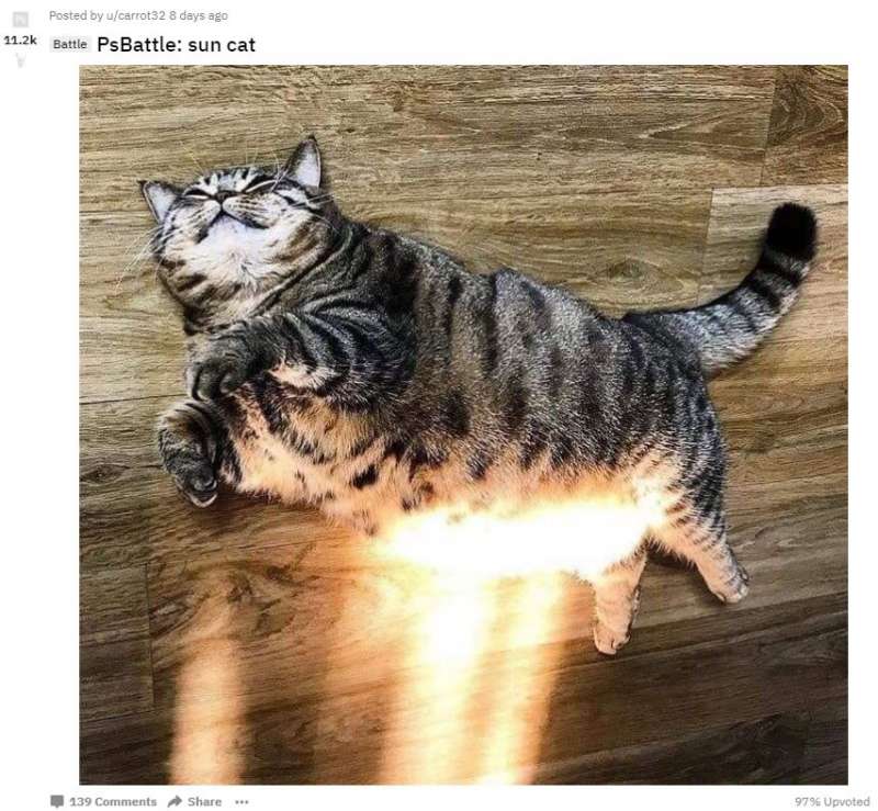 2018年06月13日想要讓網友自發性的發起「改圖大賽」,一定要有非常有趣的素材才能引起他們的興趣!這次有一張來自IG帳號bo_mang_co所分享的肥貓曬太陽照,竟然被reddit網友相中了!
