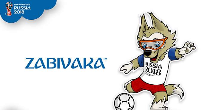 吉祥物是西伯利亞平原狼名為「紮比瓦卡」Zabivaka的卡通狼,名字在俄語中意為「射手」或「那個得分的人」之意,紮比瓦卡的毛為白、棕色相間,佩戴著運動護目鏡,著藍、白、紅配色的衣服,象徵俄羅斯國旗。
