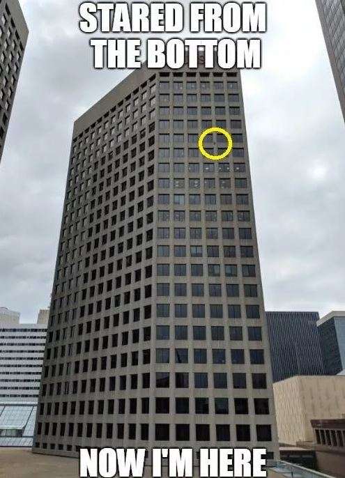 ▼也有網友打趣的分享一張照片,寫道:「當你聽到你的朋友被困在20幾樓高的窗台外面時的樣子。」