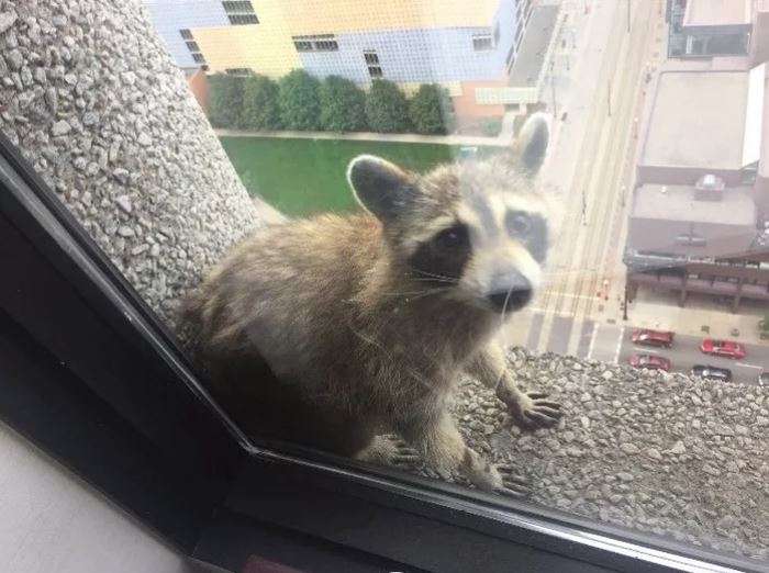 ▼有人推測由於大樓所有窗戶都是緊閉著的,讓浣熊沒有辦法進入,只能順著大樓一直往上爬。