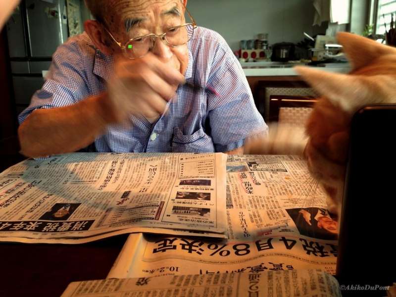 日本網友Akiko是一位攝影愛好者,從他還不會使用相機的時候,就開始拍攝他的爺爺了。爺爺是一位很有活力的老人,他工作了64年,直到2009年生病被送進醫院,才離開工作崗位。從那之後,開朗外向的爺爺逐漸失去了生活熱情,直到貓咪Kinako出現,他的生活才發生翻天覆地的變化。