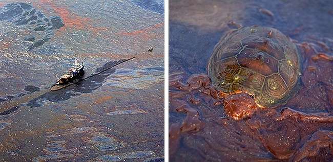 ▼11.石油污染被稱之為「海洋殺手」,許多海洋生物因此死亡。由於油井和運油船洩漏,每年都有超過120萬噸石油進入到海洋中,25%的海洋表面都覆蓋著厚度不等的石油。 2010年墨西哥灣漏油事故導致1000噸石油洩漏到海洋中,英國海洋公司已經花費了幾十億美元除油,雖然做出了許多努力,也只清除了其中75%的可燃物。