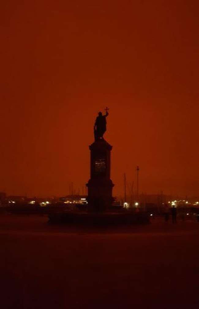 ▼7.100公里外的森林發生大火,西班牙城市希洪上空濃煙籠罩,如暗夜般陰沉。在2017年,僅在美國就發生了超過66131場火災,造成980萬英尺的土地被毀,而這些火災的起因90%都是因為人類太過粗心。