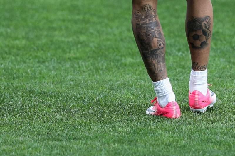 ▼事實上,內馬爾的小腿上也有著一個小男孩抱著足球站在貧民窟前的刺青,時時提醒著他「莫忘初衷」、「不能忘本」。