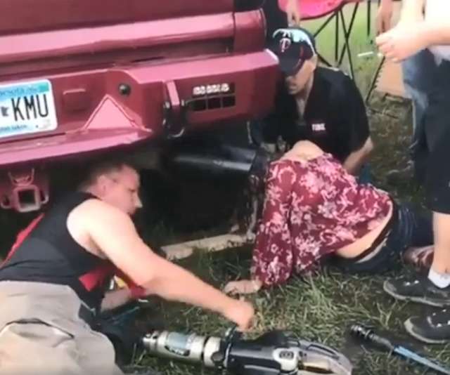 ▼原來她將頭伸進了卡車後方的排氣管內,沒想到卻因此卡住拔不出來,卡在那邊的時間超過45分鐘,最後出動了消防人員用電鋸才成功將她救出。