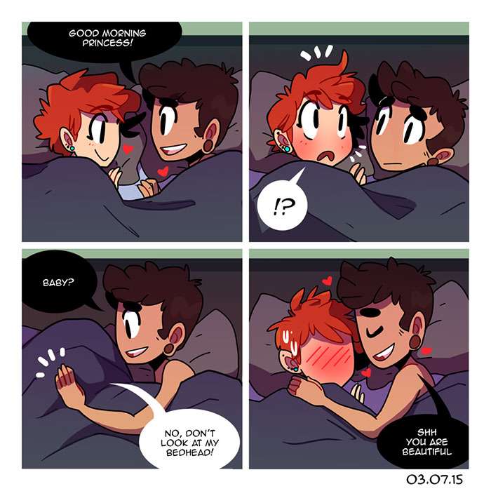 ▼「早安,我的公主!」「寶貝?」「別看啦,我的頭髮一團亂。」「哪有,你明明很美啊。」
