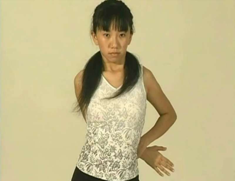 ▼接下來將右手放在身後,左手拉住右手手腕,持續一分鐘。