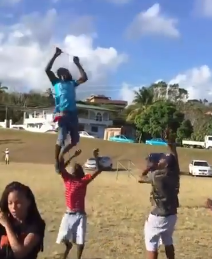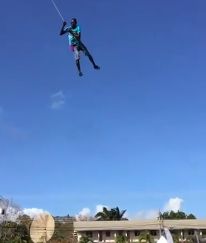 2018年06月20日風箏竟然能讓一個人飛上天空!千里達及托巴哥共和國(通稱千里達,Trinidad and Tobago)近日舉辦復活節風箏比賽,一名玩命的男子突然從旁邊搶過風箏線,再一記跳躍便飛上天空,無法下來。