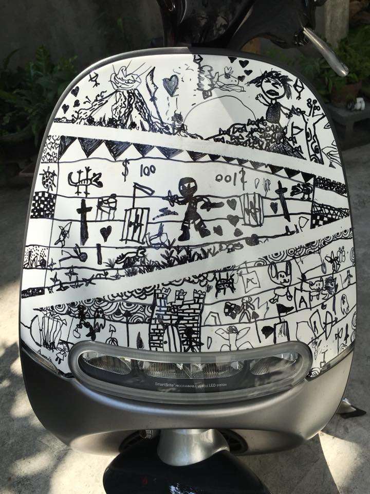 2018年06月20日每個小孩子其實都具備著藝術與想像能力,一位老師因為想替騎了多年的Gogoro換個造型,就放手讓孩子用奇異筆在上面塗鴉,結果完成的作品被網友狂讚:「讚到我都想開放車殼給小孩畫了!」