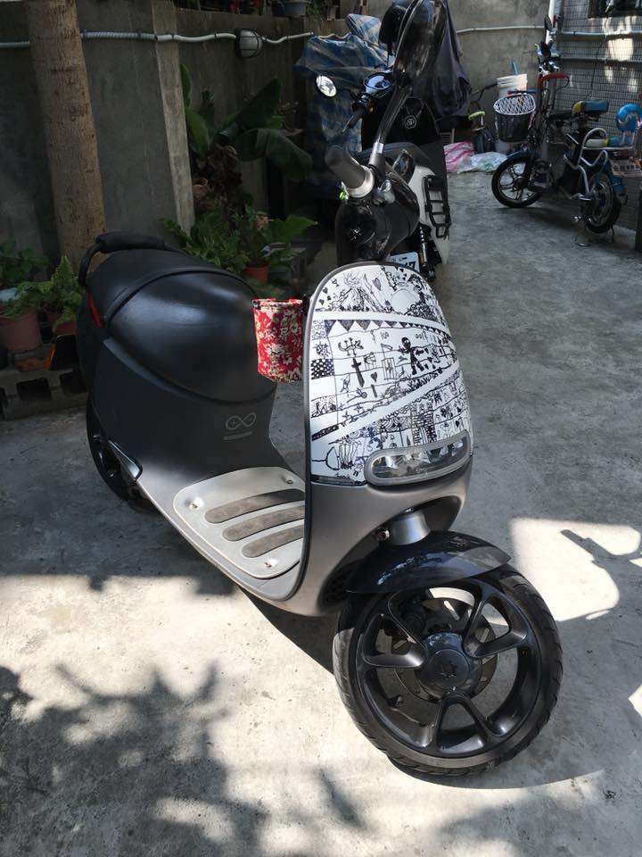 ▼Gogoro由於車殼上有一大面留白,所以很多人會為自己的愛車彩繪。身為美術老師的李老師說,自己買了Gogoro兩年,前一次面板是自己的創作,由於小孩喜歡畫畫,這次就想說放給小孩塗鴉。
