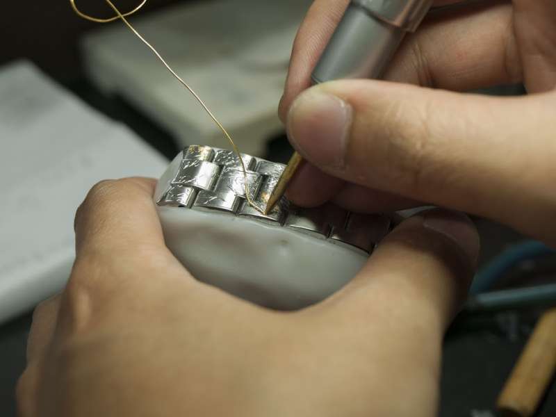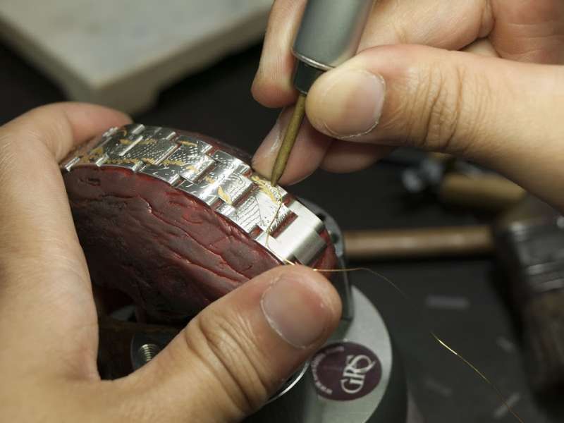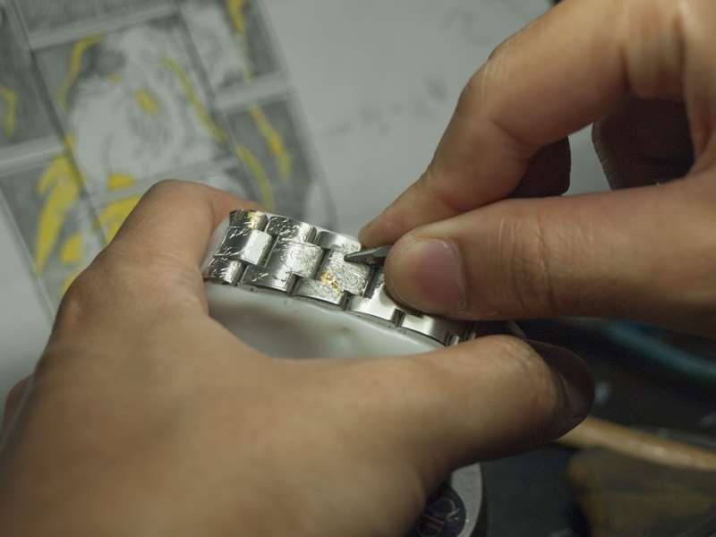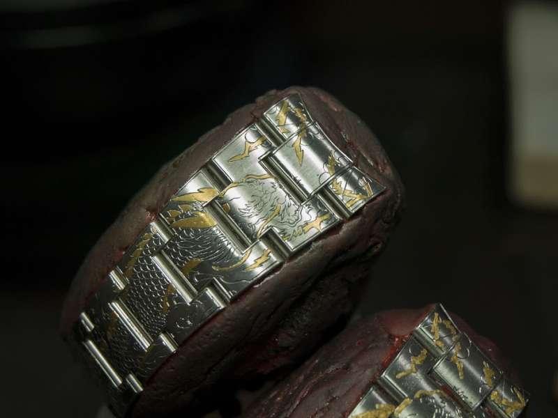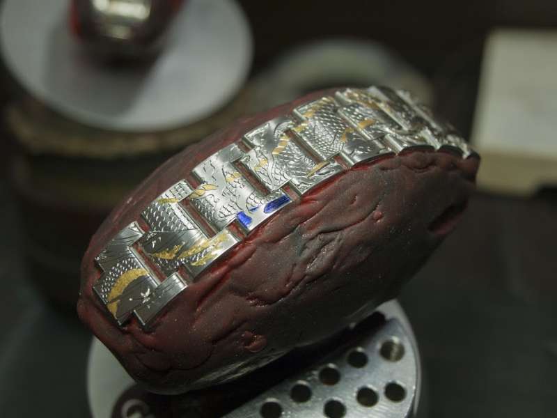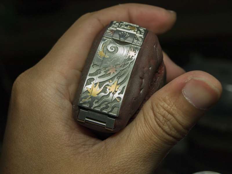 ▼為了用鑲的將貴金屬鑲嵌入錶帶,必須花費大量的時間和精神。